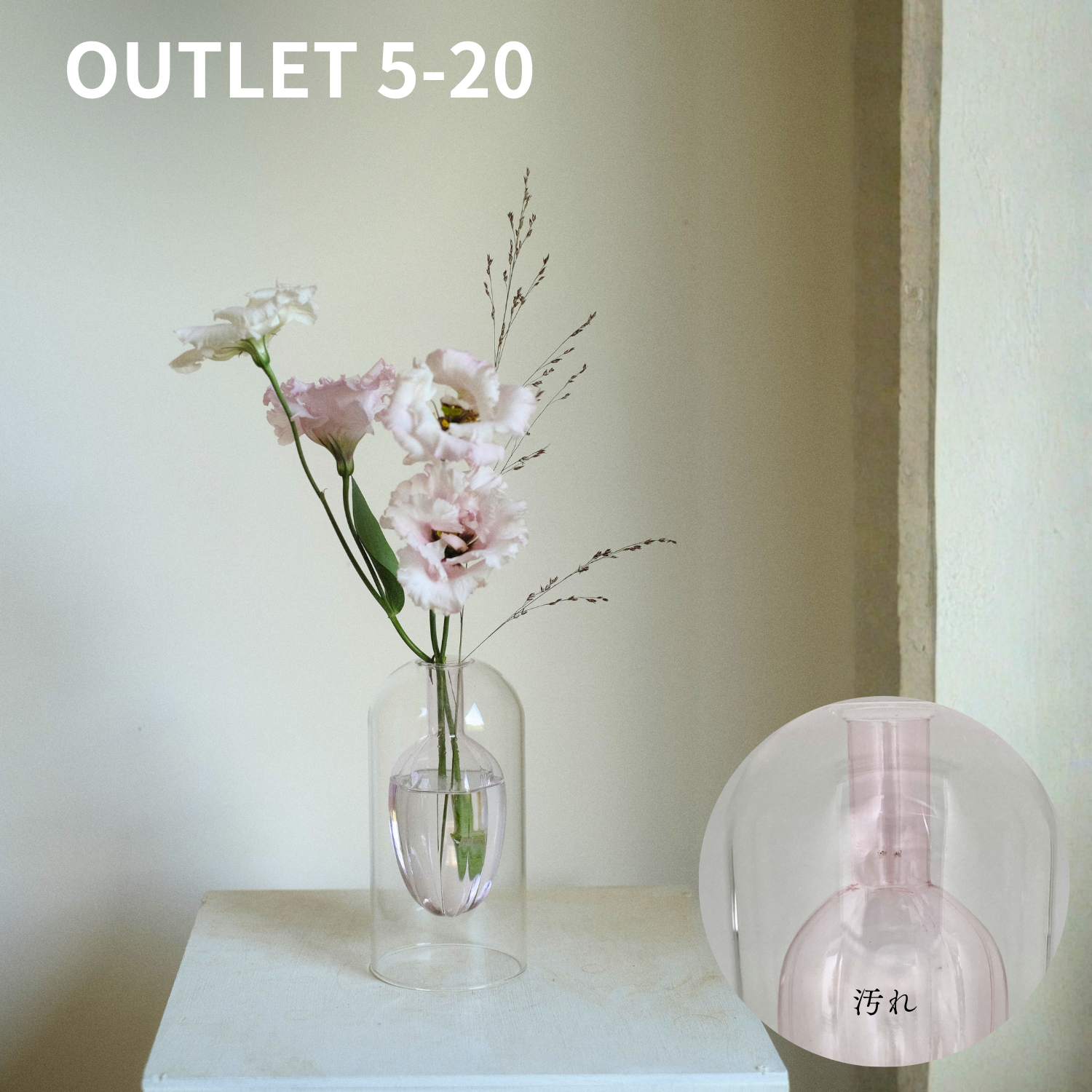 内側のガラスはシンプルでありながらも、色がついているため、アクセントとなり、お部屋の中にさりげない彩りを添えてくれます。特に、内側のガラスと同じ色味のお花を飾ると、統一感が生まれ、空間全体がより一層引き立ちます。